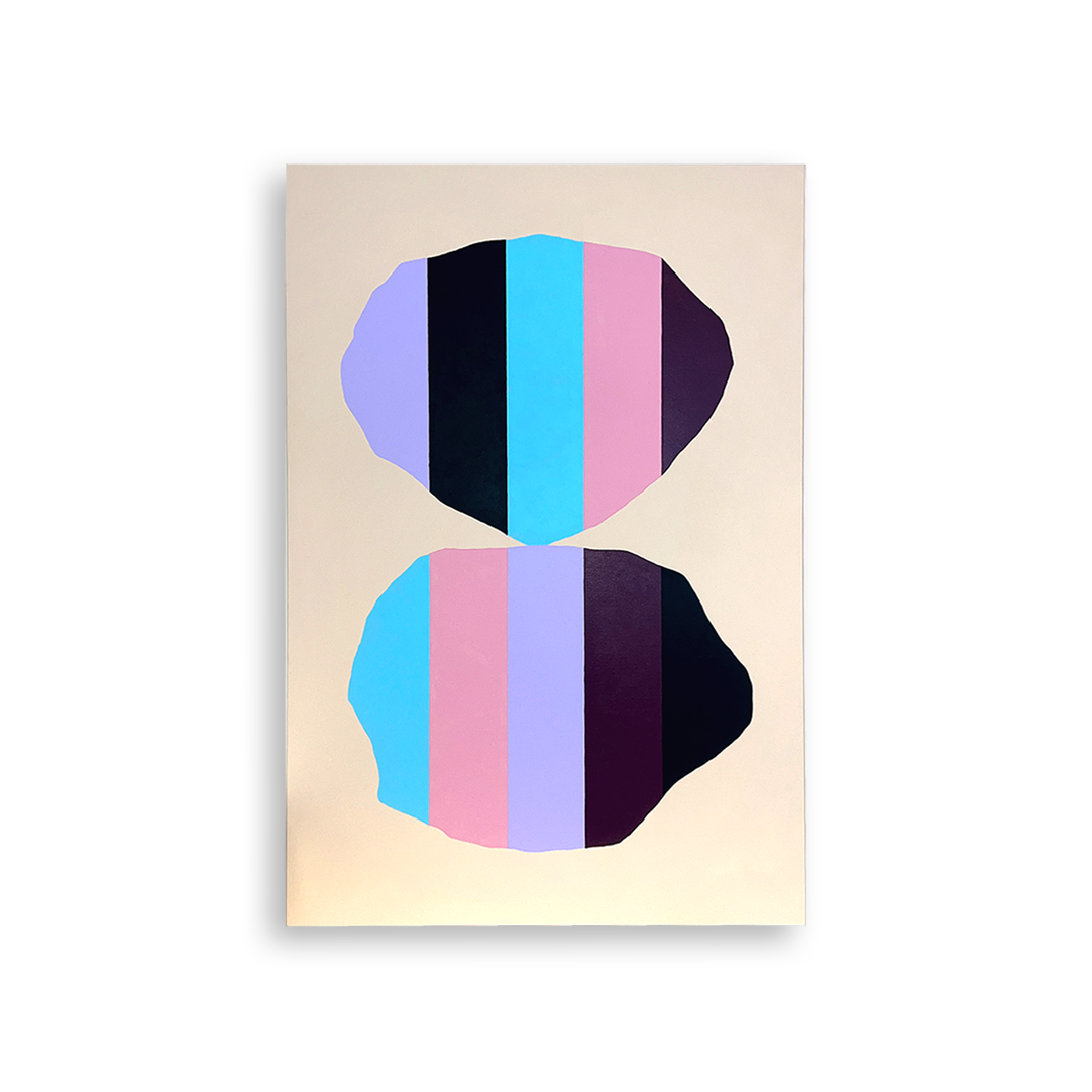 Each piece creates a dynamic tension and harmony, blending shape and texture. With a strong graphic design background, the artist invites viewers to explore the world through a distinctive blend of shapes, textures, and emotions.
